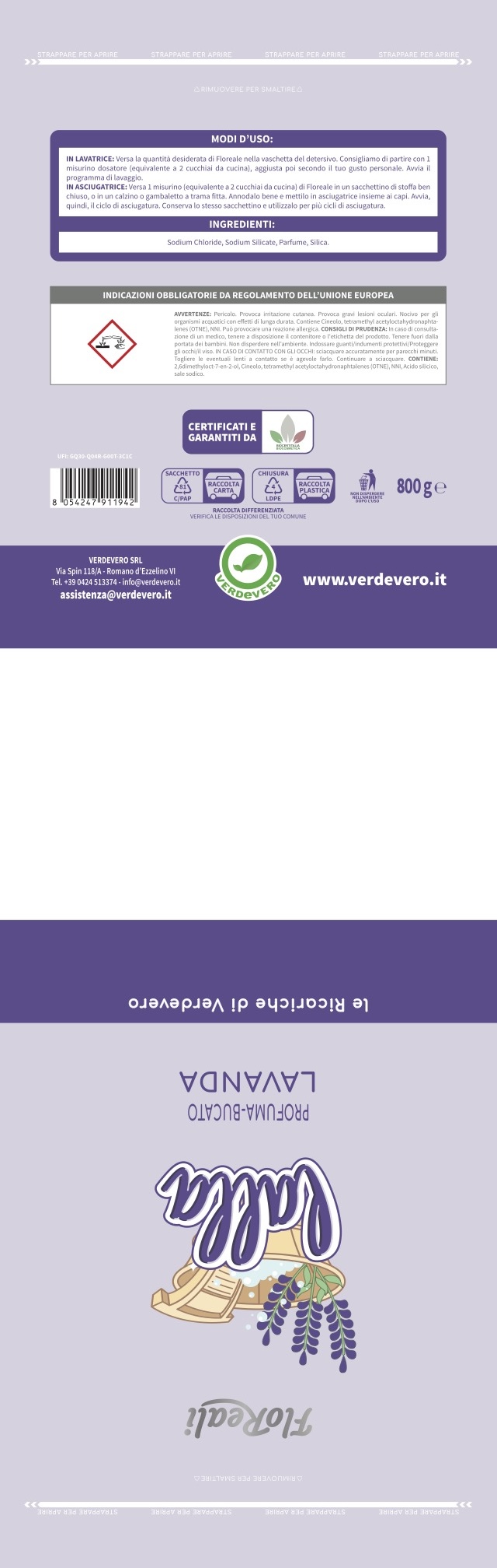Con Lalla, il Floreale di Verdevero al profumo di fiori di lavanda potrai sempre dosare il tuo profumo semplicemente aggiungendo o diminuendo la dose del tuo profuma bucato lavatrice direttamente nel cassetto del detersivo della lavatrice.