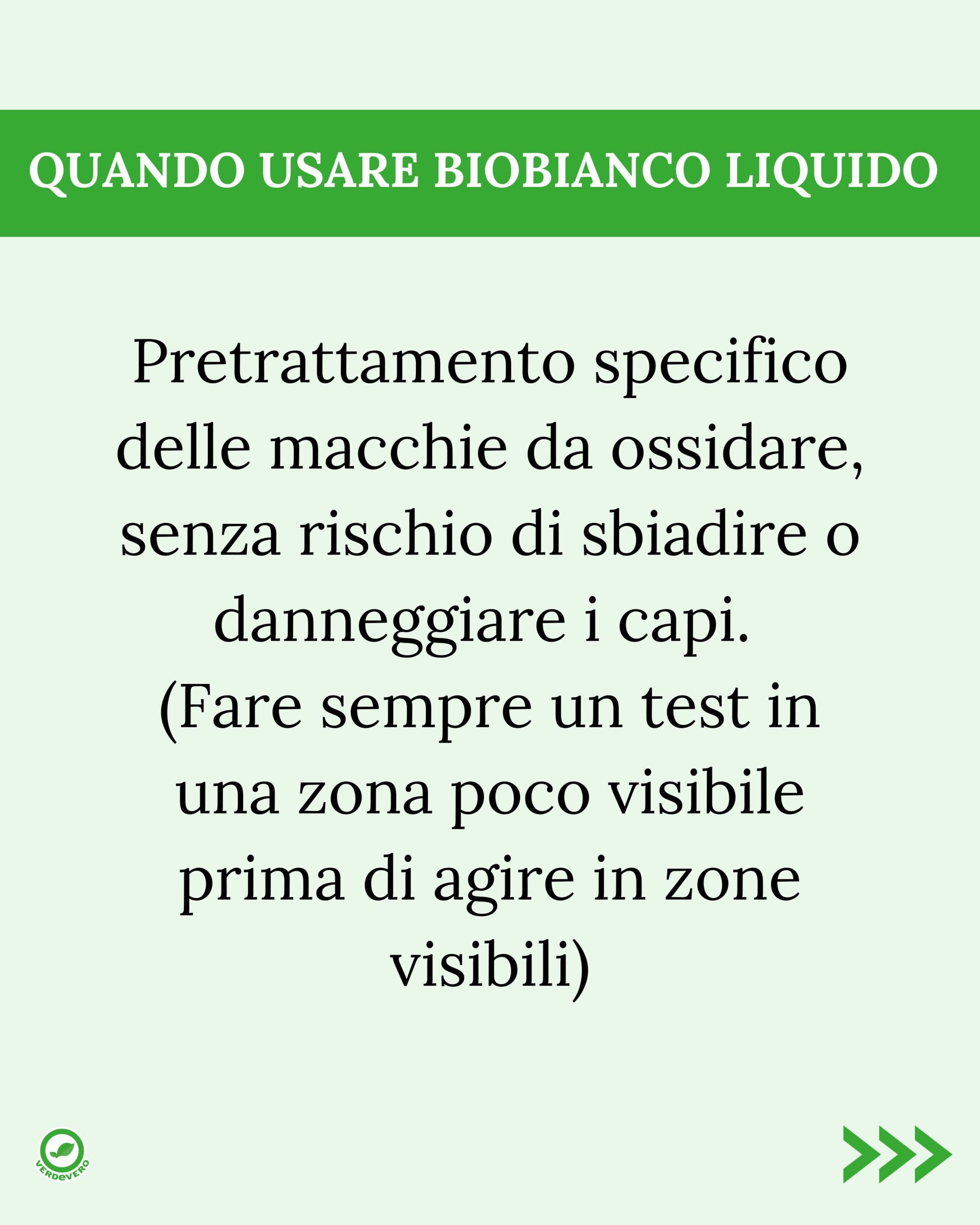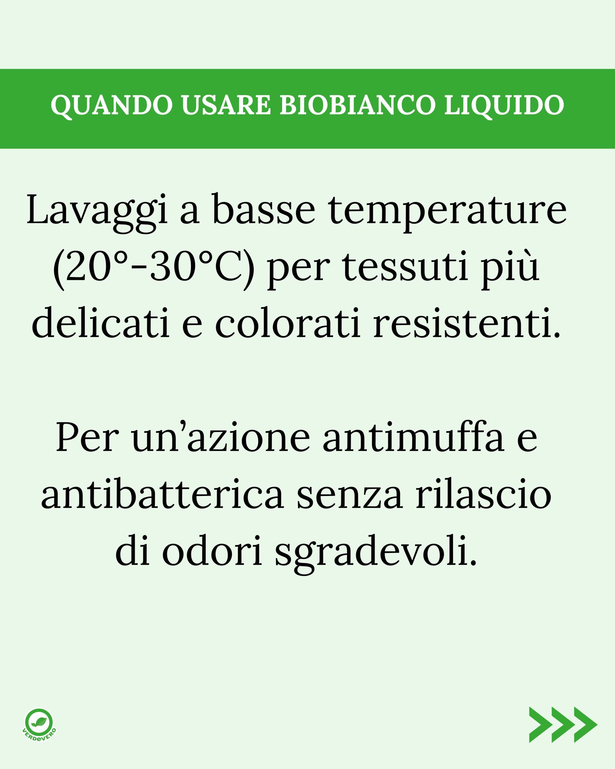 - BIOBIANCO LIQUIDO è perfetto per chi cerca un’azione delicata ma potente a basse temperature, per pretrattare macchie e igienizzare superfici.